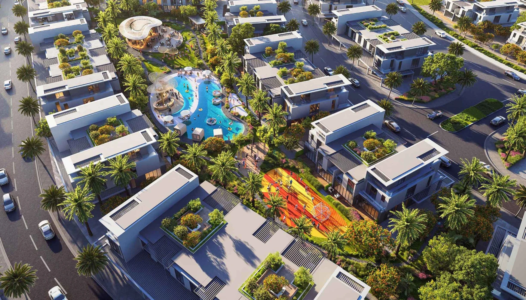 Damac Sun City at Dubailand is an innovative class residential community development by the renowned Damac Properties offering the premium collection of 4 & 5 bedroom townhouses. This latest launch development aims to redefine the luxury living by combining the modern design with nature-inspired aesthetics, presenting a serene enclave to explore and thrive. The façade integration within the serene spaces and landscape creates a private oasis, where its residents can foster a deep connection with nature lined with the convenience of modern living.